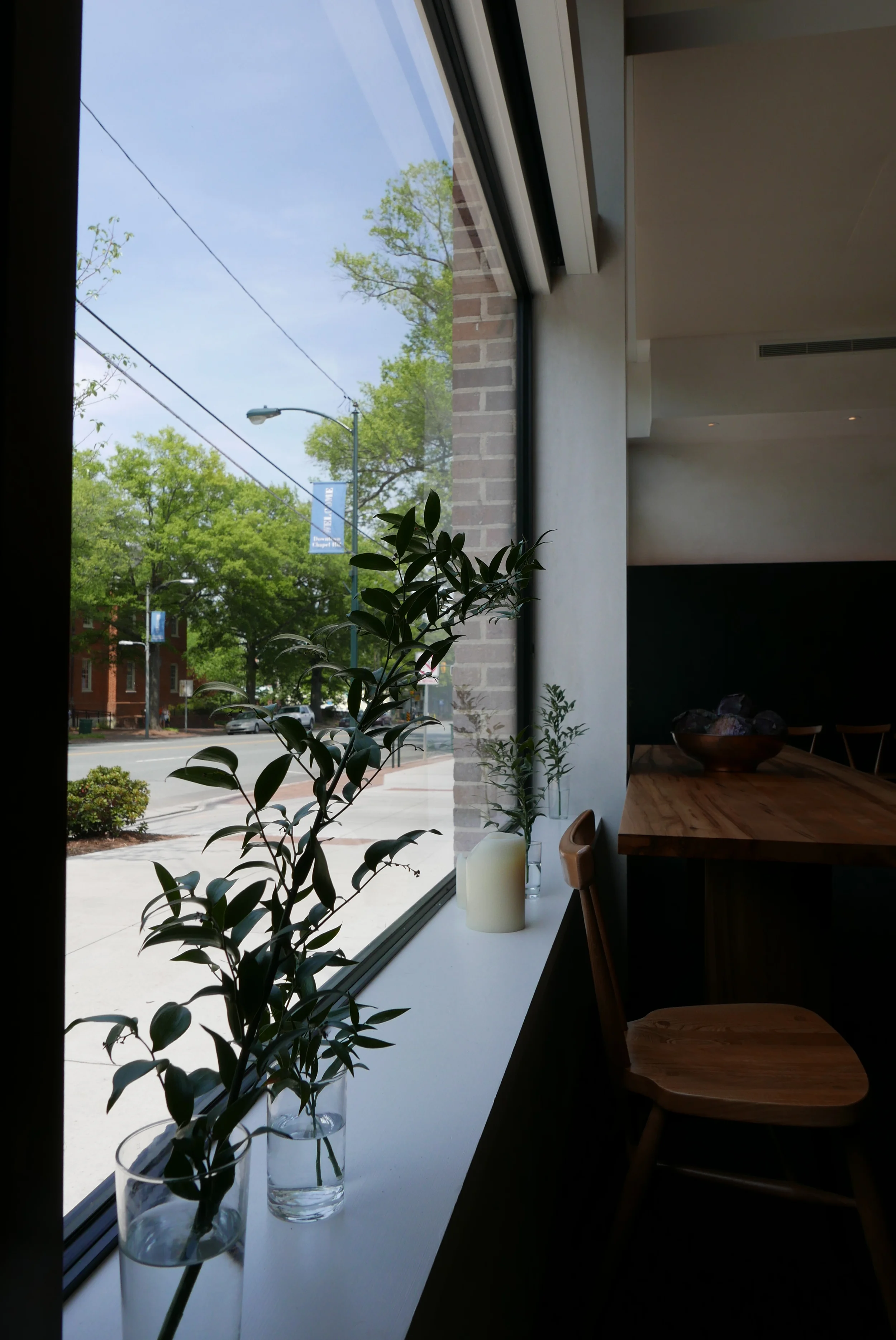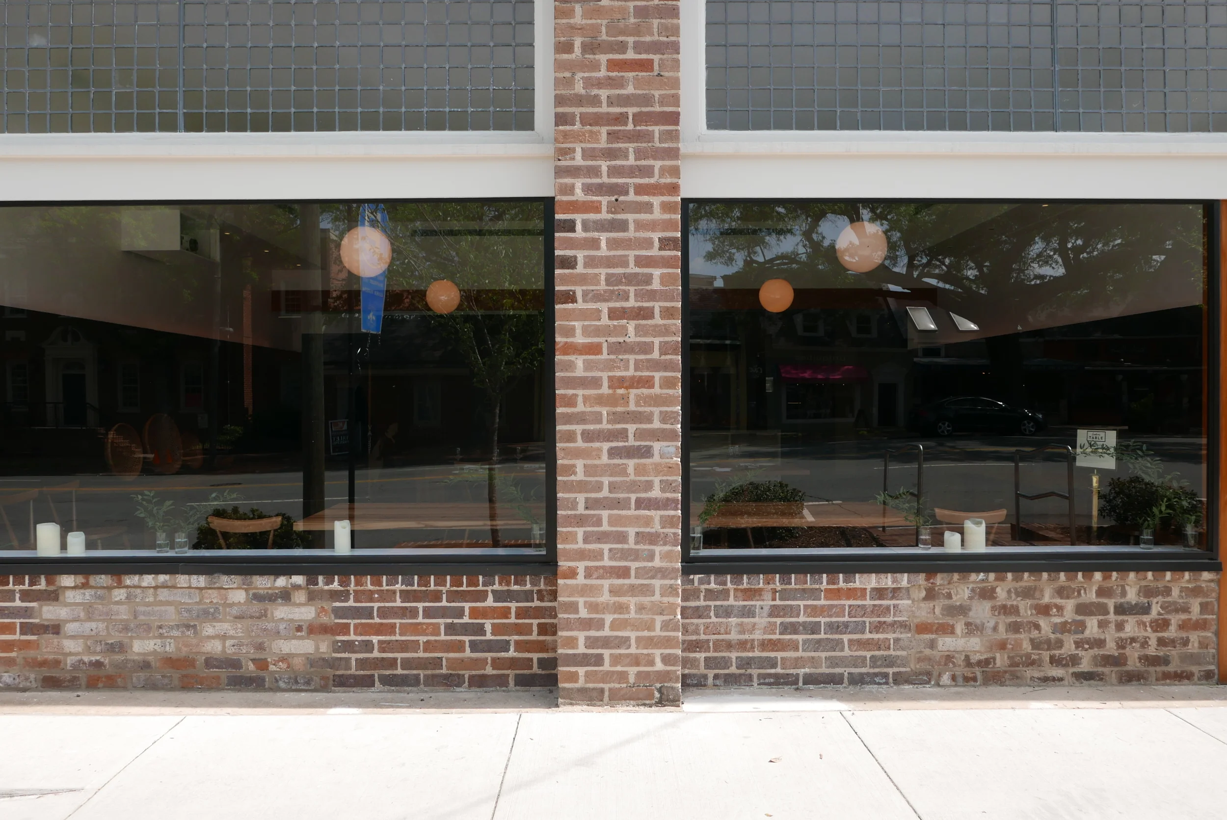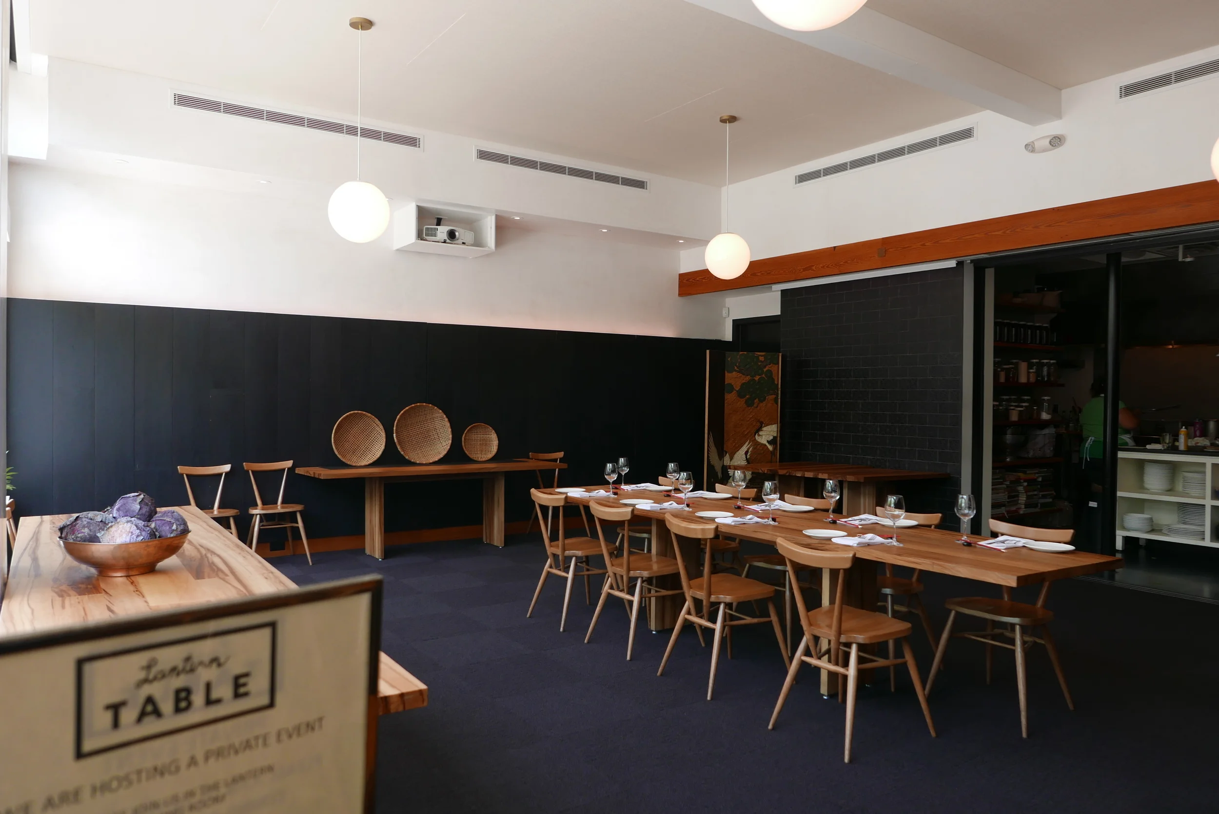 At the renowned Lantern Restaurant on Franklin Street in Chapel Hill, this sweet private dining space adds an intimate room to a dining institution. The private room connects to the street through large panels of glazing and to the kitchen through wide sliding glass doors.